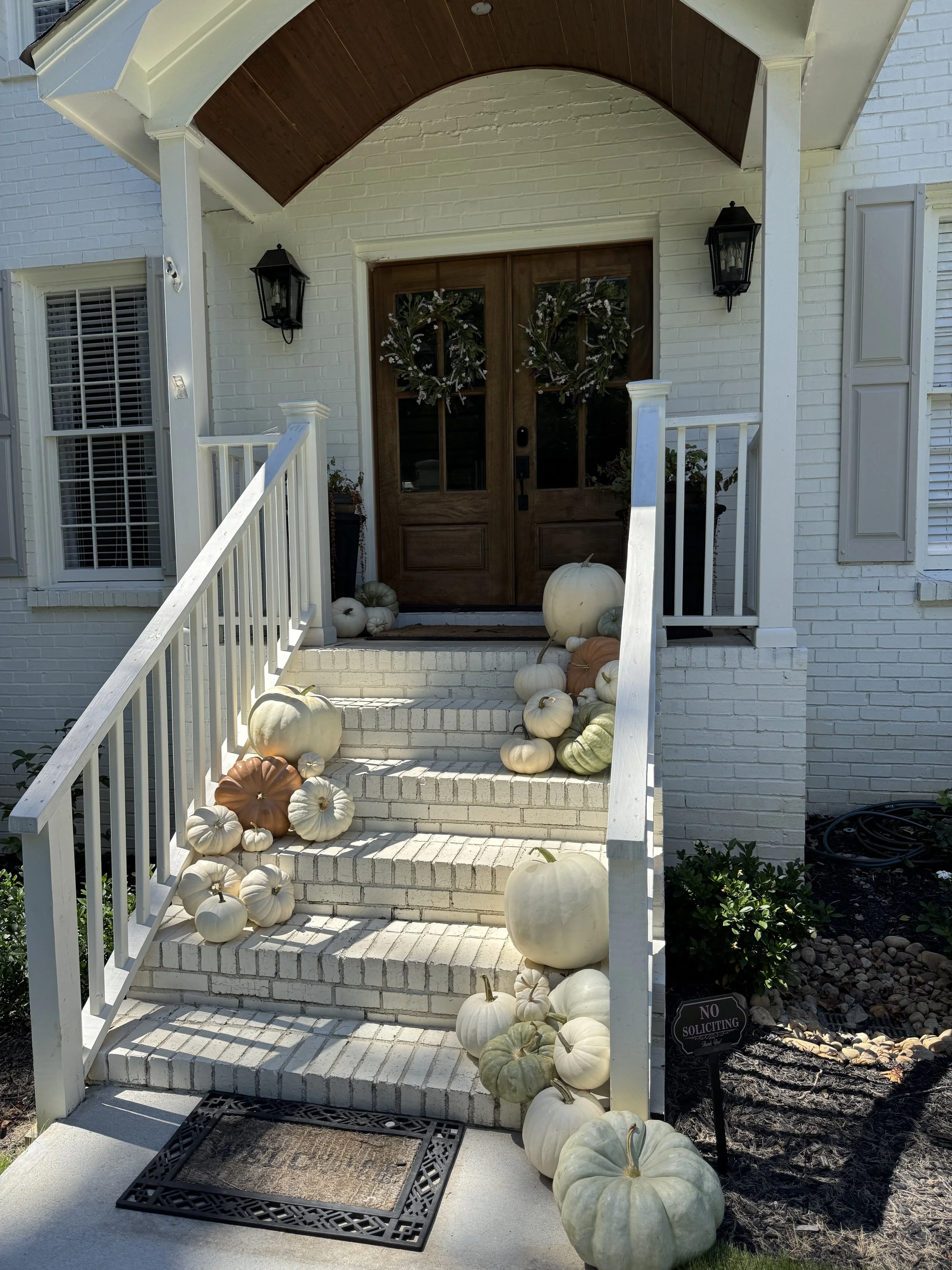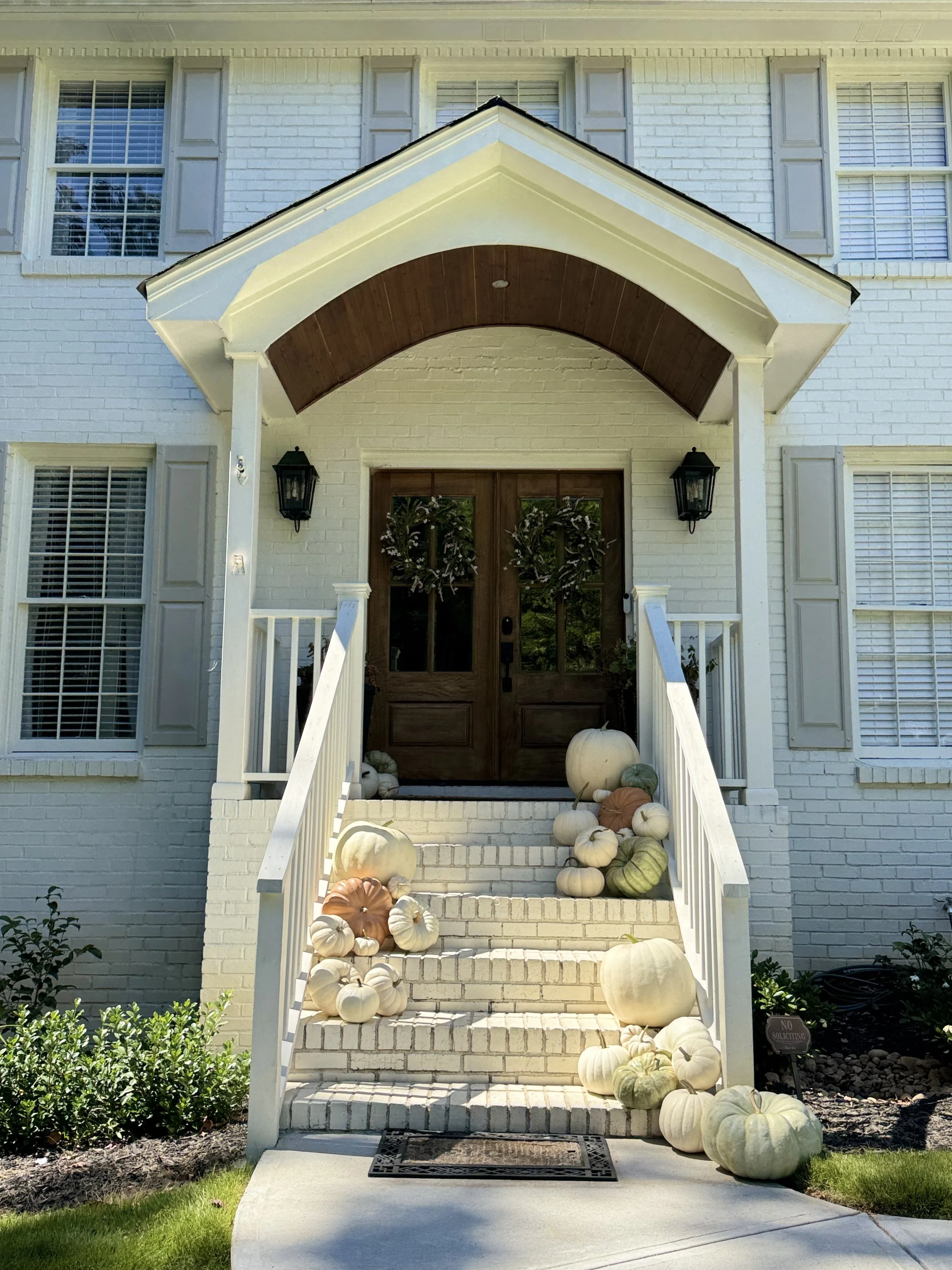A perfect starting point for bringing the magic of autumn to your doorstep. The Dapper Doorstep is designed for a single entryway or a small porch, featuring a tasteful and expertly curated collection of 25 pumpkins and gourds. It's the ideal package for a DIY client who wants a simple yet impactful fall design.